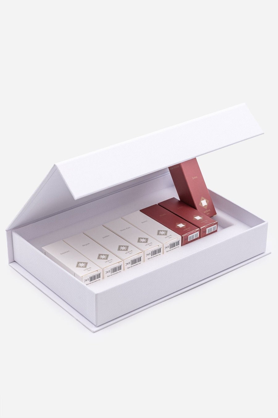 Scopri il nostro set di campioni da 2 ml, presentato in un'elegante e pratica scatola bianca.